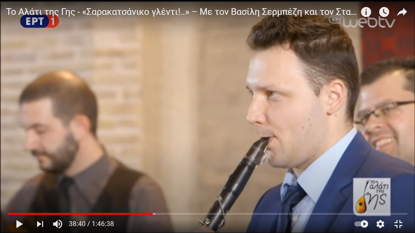 Την Κυριακή 12 Μαρτίου 2017, στην ΕΡΤ-1 και ώρα 13:00-15:00, ο Λάμπρος Λιάβας και το «Αλάτι της Γης» μας προσκαλούν σ’ ένα δυναμικό γλέντι με δυο κορυφαίους Σαρακατσάνους τραγουδιστές: τον Βασίλη Σερμπέζη και τον Σταύρο Μπόνια.